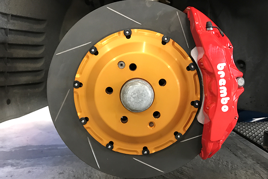 フロント brembo 6POT / 370φスリットローター、 リア brembo Modena 4POT /370φスリットローター&純正ツインキャリパー